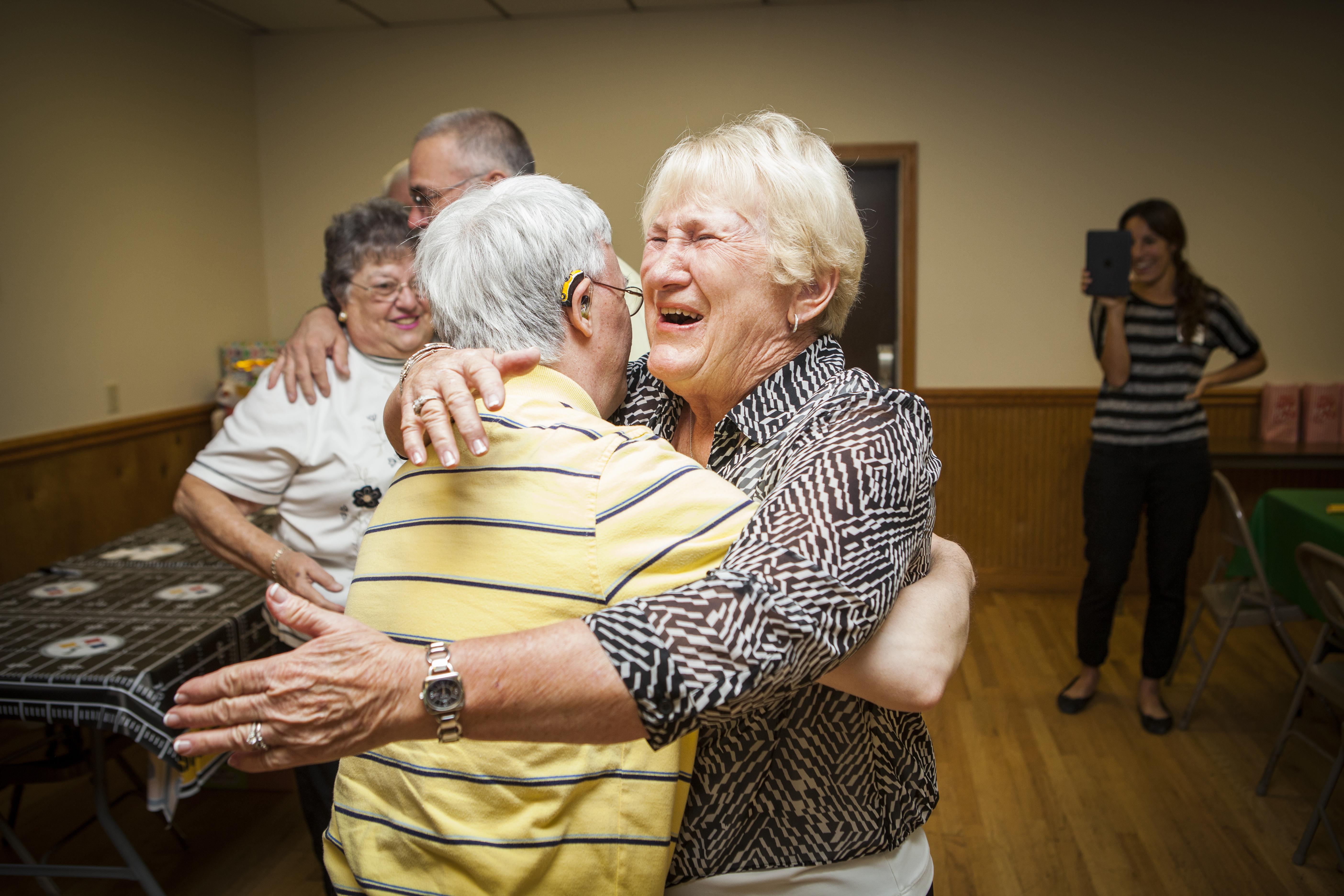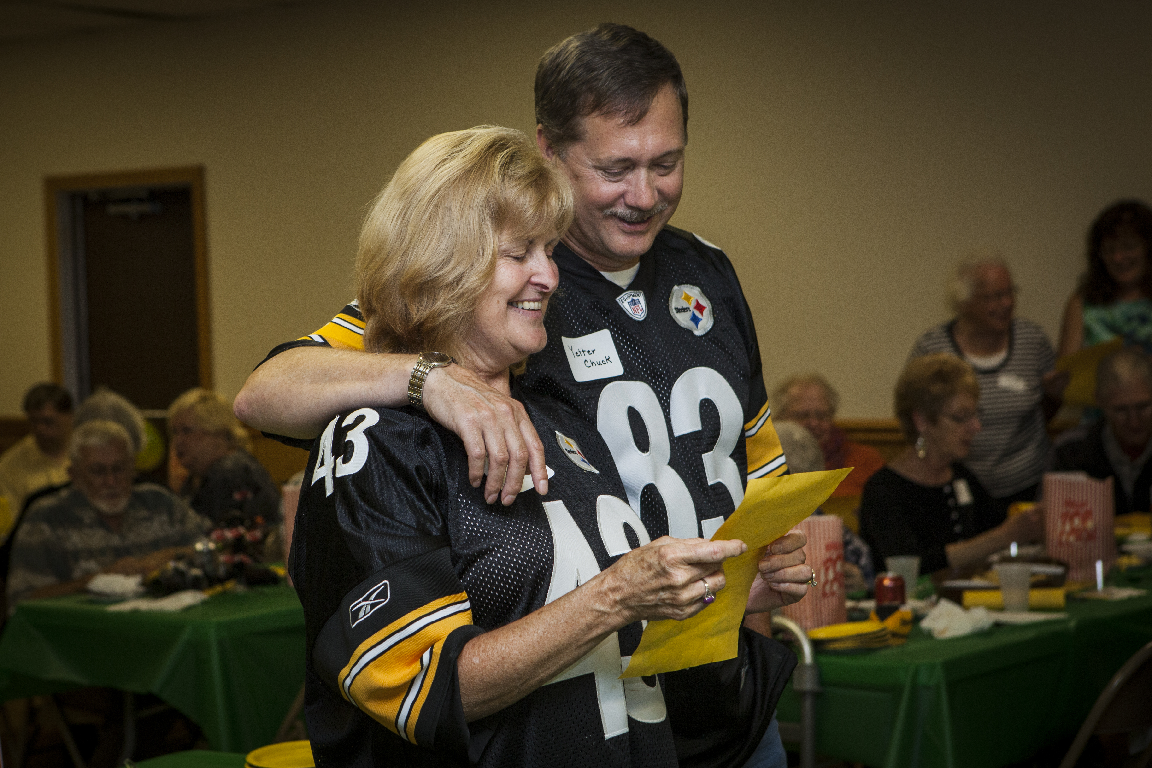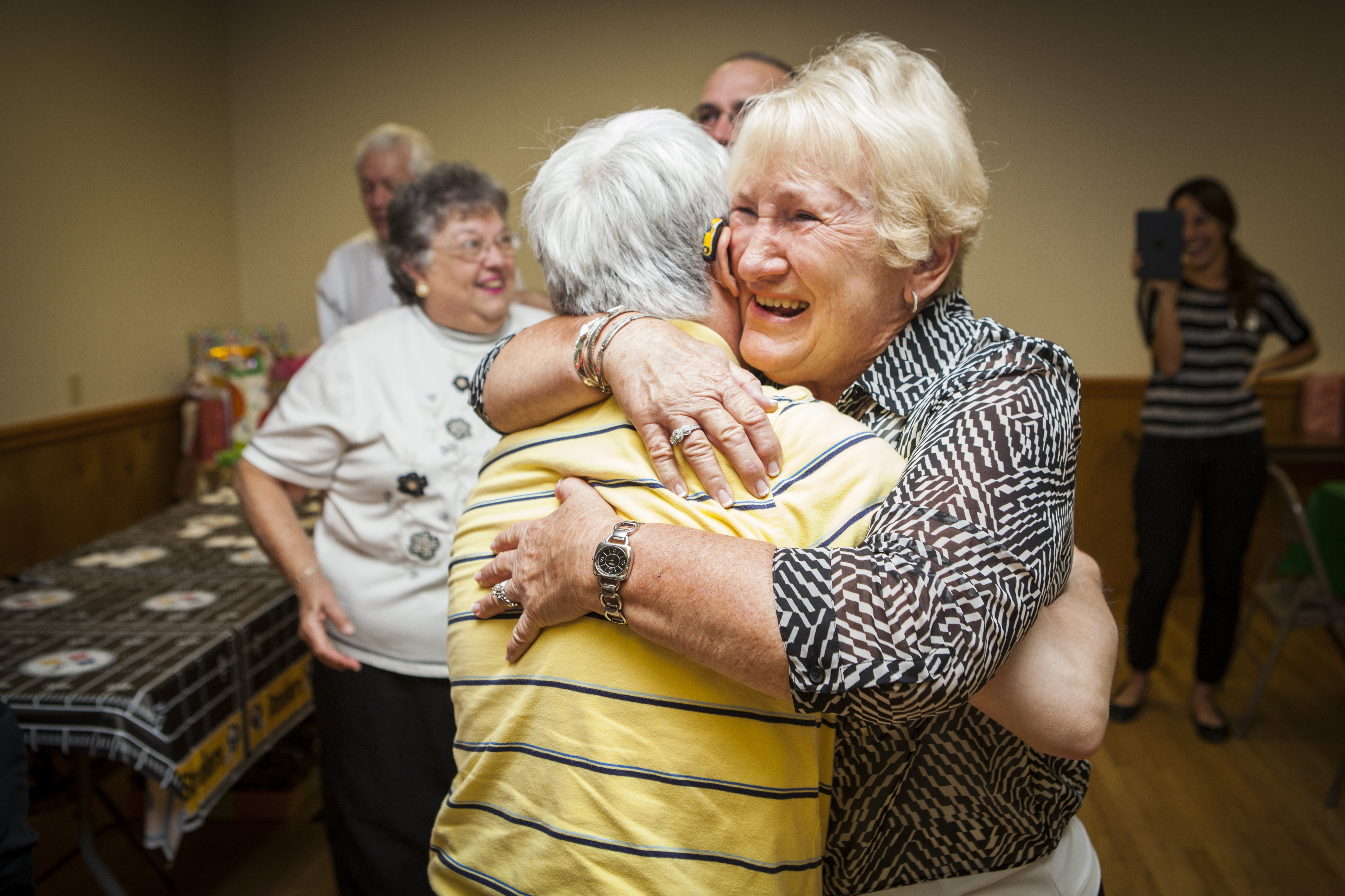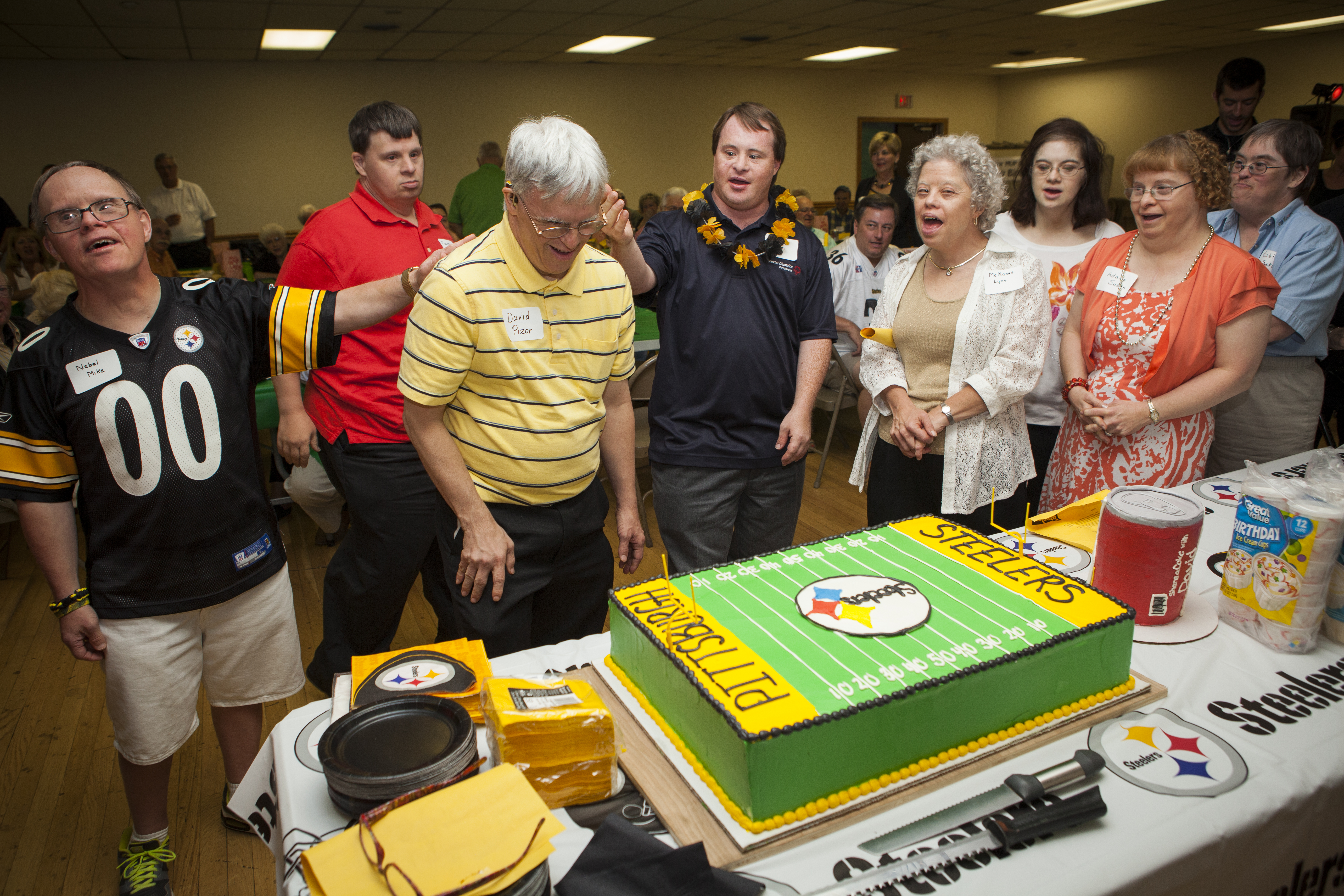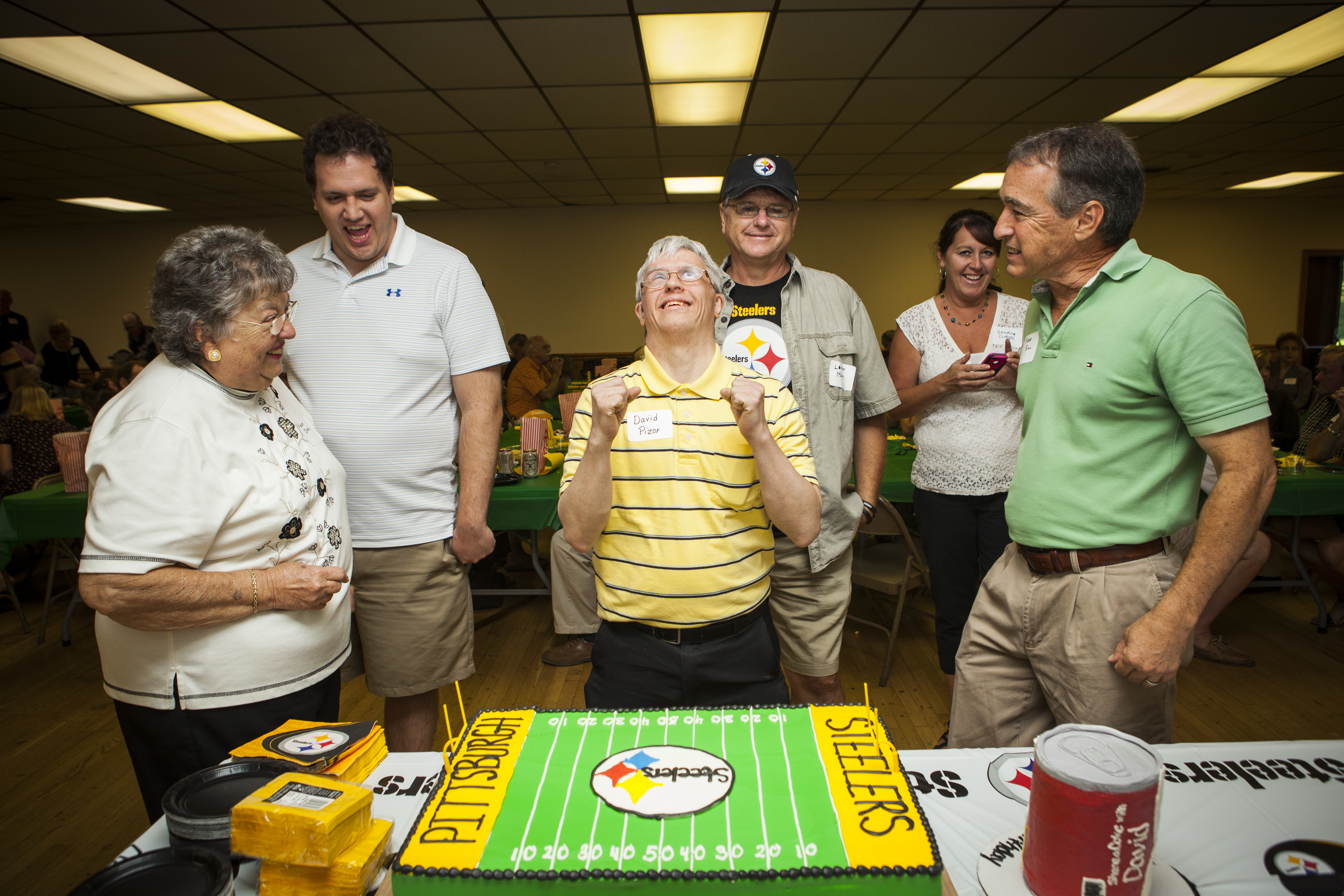 We’re huggers in my family. As you can probably tell by the below photos. David proceeded to go around and hug everyone. From old reading teachers to hair dressers as well as tons of aunts, uncles, cousins, and practically any other relative you can think of. Dave’s whole party was themed Pittsburgh Steeler’s style; from decorations to cake. He was so excited when he not only saw the Steelers cake but the Coke can cake that had been specially made for him. My grandma wrote songs about Dave that everyone sang along to that went along to oldies like ‘Take Me Out To the Ballgame.’ Dave’s old drum teacher had also come along with his band and let David jam out on the drums to his favorite songs. It was so wonderful being able to capture Uncle Dee’s Surprise 50th Birthday and I hope you all enjoy the photos as much as I did taking them. -Alysha