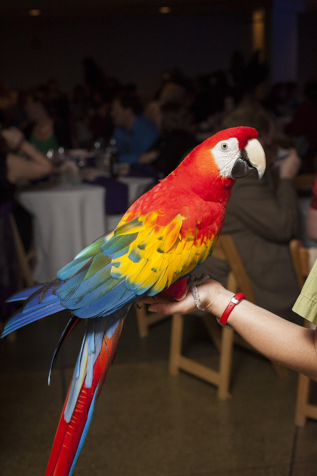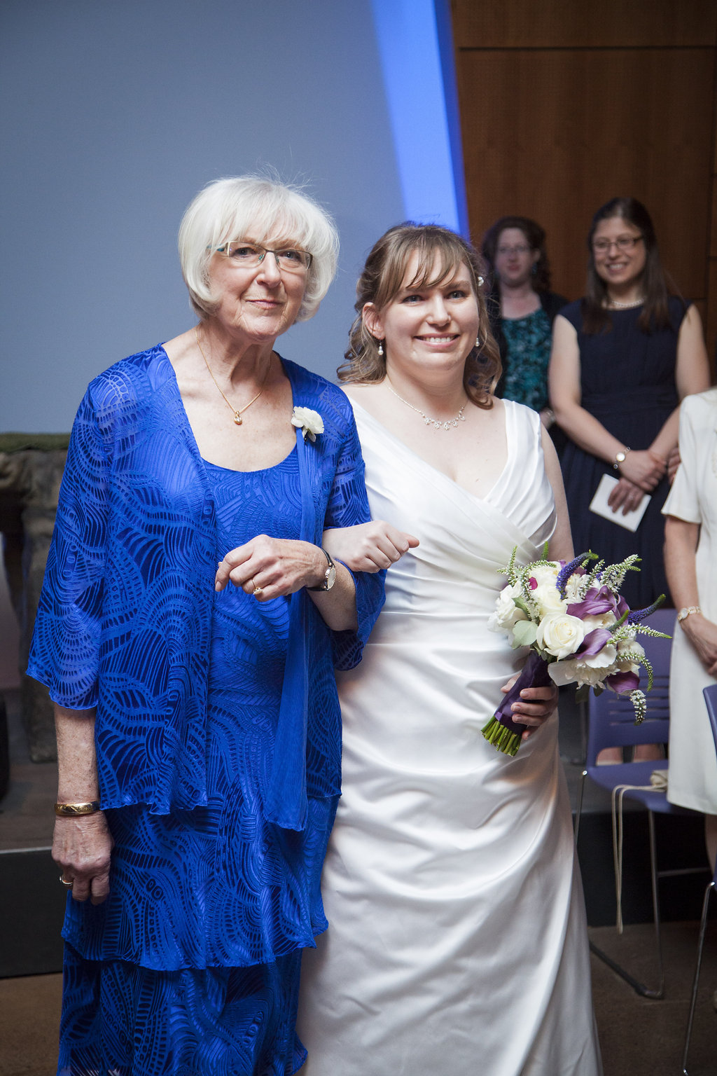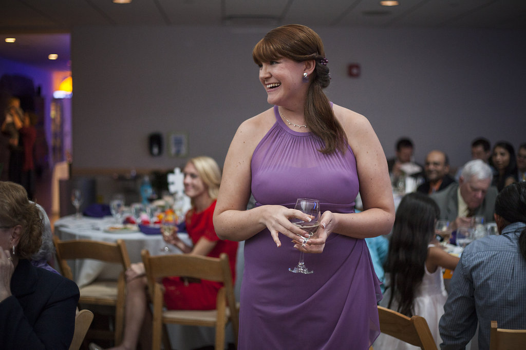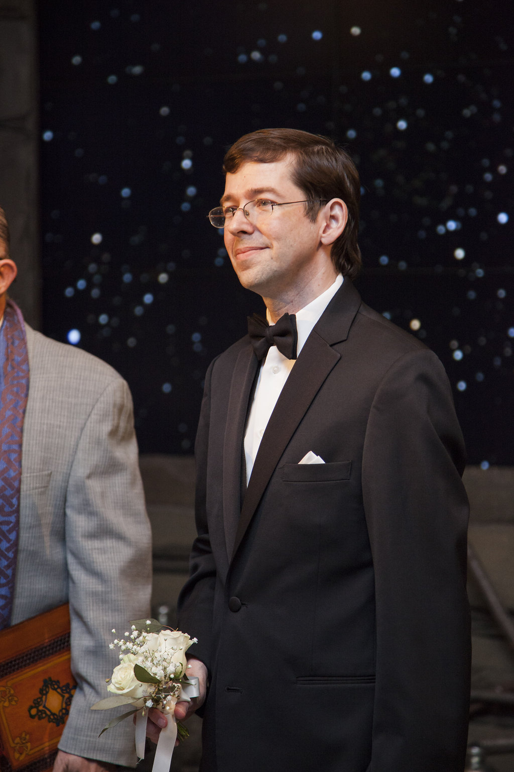 One of the most unique things about the whole wedding day was their ceremony which took place in the Aviary’s Flightzone Theater. There’s a huge tree in the middle, a big screen behind them (which they set as a night sky scene), and rock plateaus throughout. They decorated it with candlelit lanterns and big vase bouquets. It was stunning, like something out of a movie. Imagine getting married outside on a starlit night and voila! Beth and David’s ceremony. They gave each of their mother’s flowers and had their family members do some wonderful (and funny) readings. Everyone had a chuckle when they exited the ceremony to Star Wars (not once, but twice!) only to be greeted by a penguin named Goldie outside the theater.