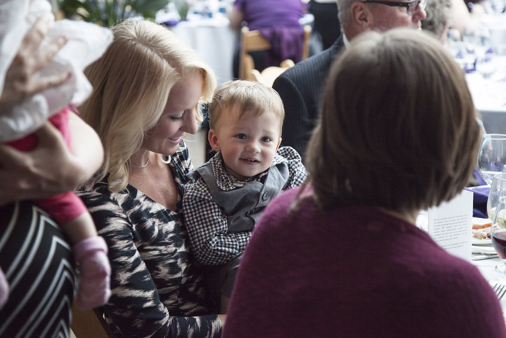 The whole day was filled with that laughter. Despite Mother Nature deciding to make it rain all day, these two (and their party) rocked it! Sam pulled out rain boots for all the ladies and umbrellas were held as props. These two and their party certainly made the best of everything that was thrown at them! Purple accents highlighted almost every small detail from dresses, bouquets, the cake, and even small touches handmade by family like pumpkin decorations made by the bride’s mom.