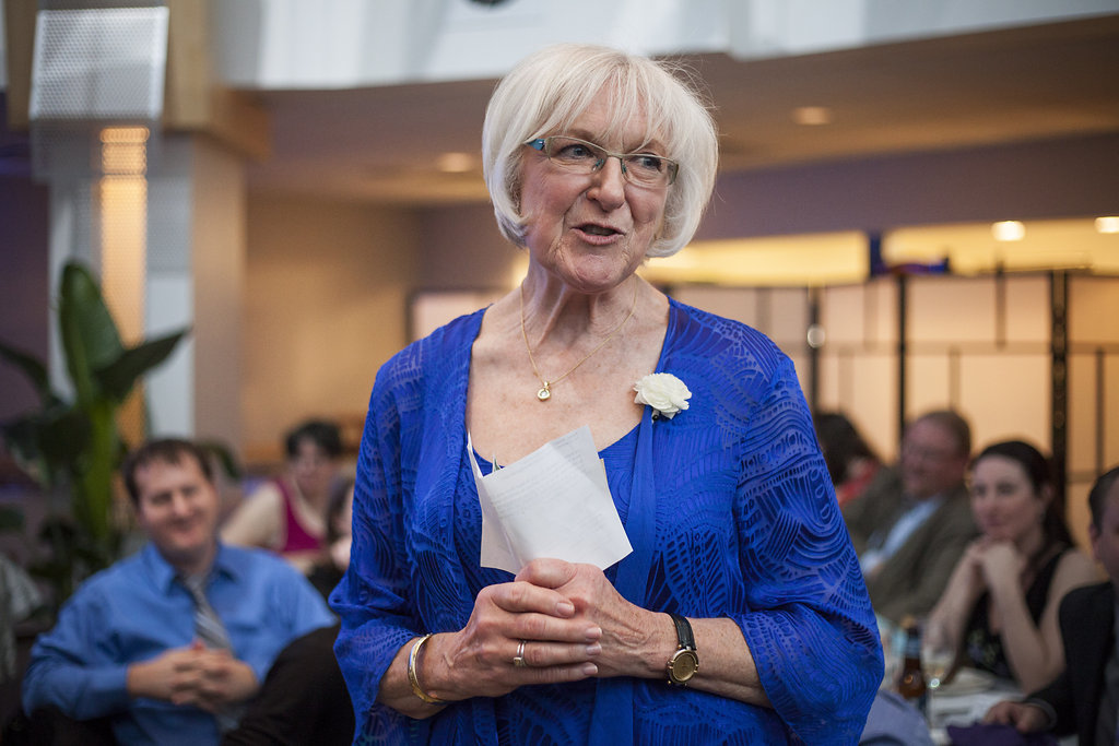 The bridal party were all decked out in blue dresses with lovely sunflower accent bouquets. Walking down the aisle, the brides rocked custom Converses that said ‘2gether’ and ‘4ever.’ How fantastic is that?! There was a wonderful moment when Jodi was waiting for Mary as she walked down the aisle, and as she looked up and saw her bride, the love shining in both their eyes was beautiful.